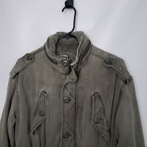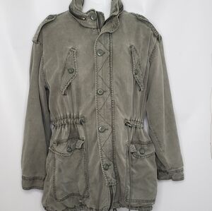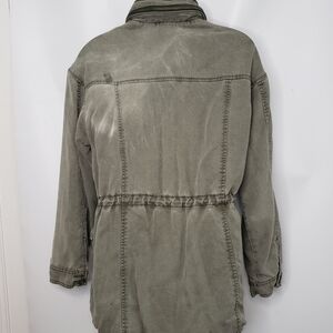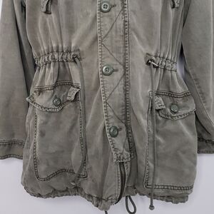 American Eagle Olive Green Utility Jacket Hide Away Hood Pockets Size S…