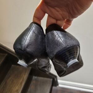 Chic black heels with a pointed toe. Elegant pleated design. Perfect for any occasion.