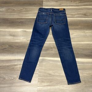 Experience the perfect blend of comfort and style with these American Eagle Outfitters skinny jeans. Crafted in a classic blue hue, they feature a sleek, tapered fit that complements any casual look. The durable denim fabric ensures long-lasting wear, making them a versatile addition to your wardrobe.