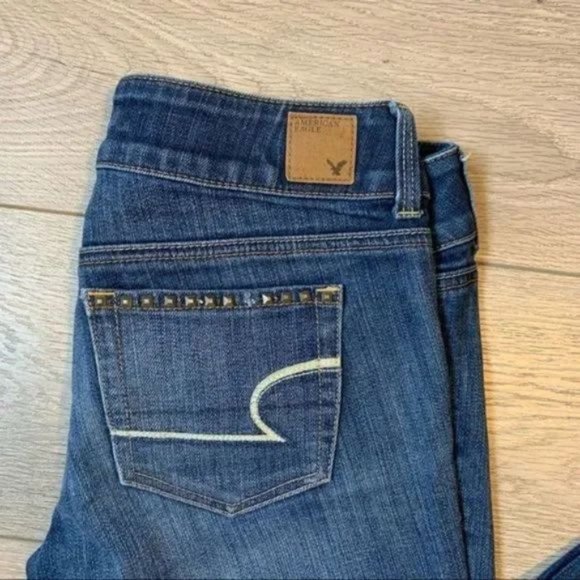 American Eagle Outfitters Blue Ae Artist Stretch Stud Accents Cropped Jeans US 6