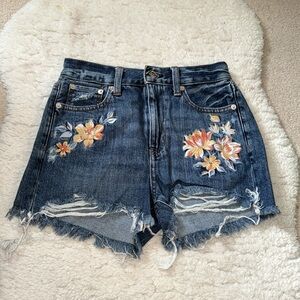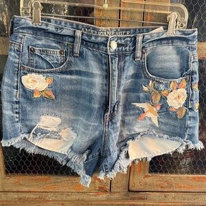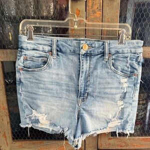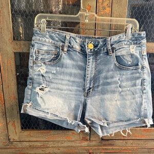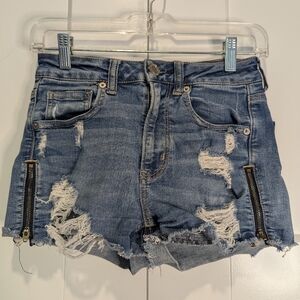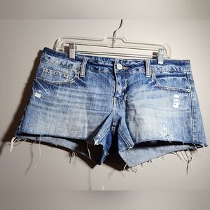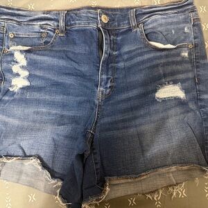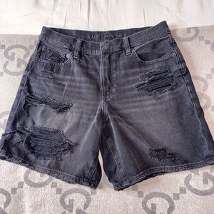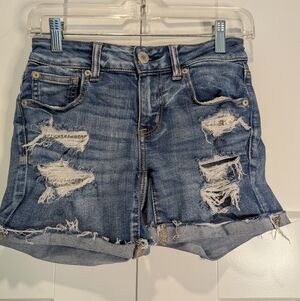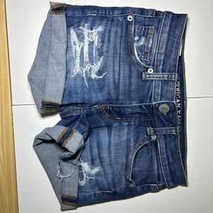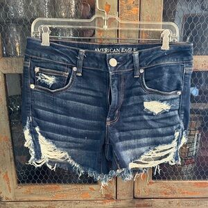 American Eagle Outfitters Dark Blue Distressed Jean Shorts