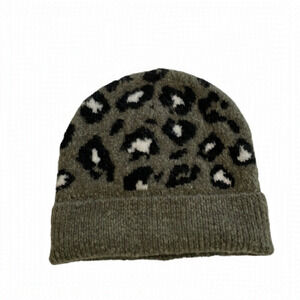American Eagle Outfitters Green Leopard Print Knit Beanie Hat