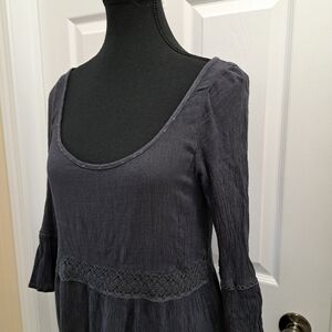 ❤️ American Eagle Outfitters Grey Dress Women's Small Crinkle 3/4 Sleeve