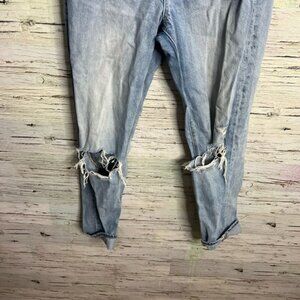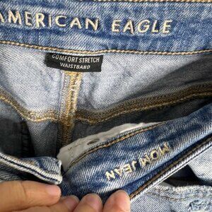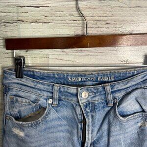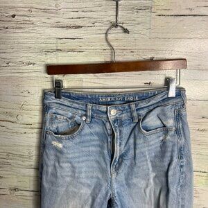 American Eagle Outfitters High Rise Blue Distressed Jeans size 8 mom x-long