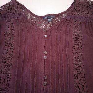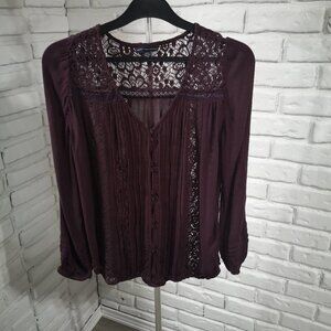 American Eagle Outfitters Ladies Burgundy Long Sleeves Blouse
