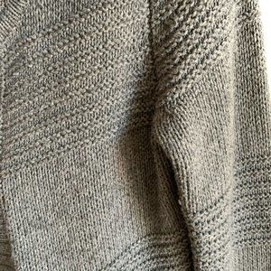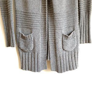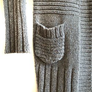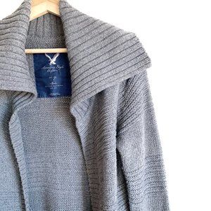 WHAT: American Eagle Outfitters long grey knitted wool cardigan. Has one button closure.