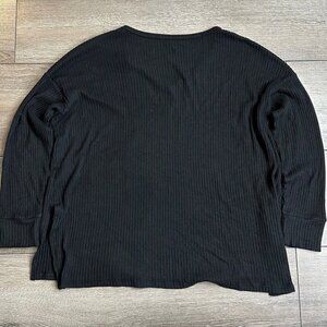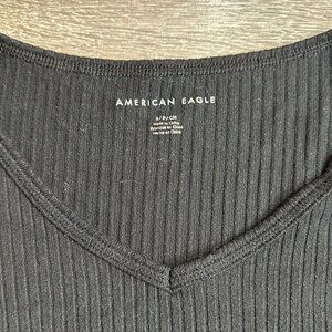 American Eagle Outfitters Long Sleeve T Shirt Size S Top V Neck Rib Black