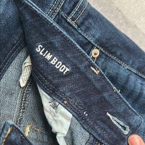 Discover comfort and style with these American Eagle Outfitters women's low rise, slim boot blue jeans. Perfect for any casual outing. They have some stretch. Size is 8 long. Waist is 30 (low rise), hips 36, inseam 32.