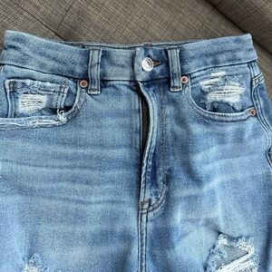 American Eagle Outfitters Medium Wash Distressed Curvy Mom Jeans