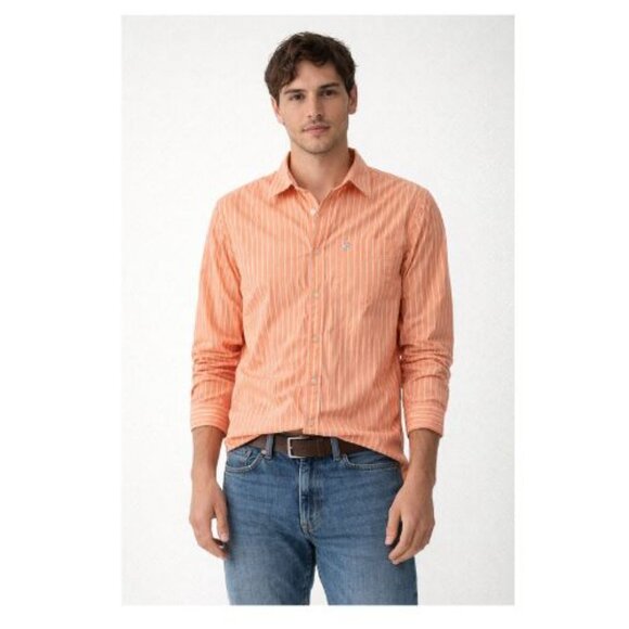 American Eagle Outfitters Men's Orange White Stripes Casual Button Down …