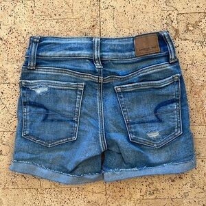American Eagle Outfitters Next Level Stretch Blue Distressed Jean Midi Shorts
