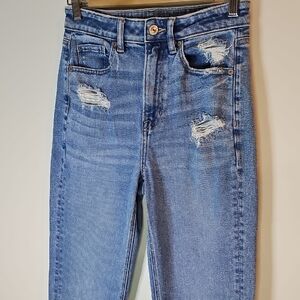American Eagle Outfitters Size 2 Blue Distressed Style Straight Leg Mom Jeans