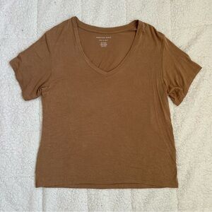 Elevate your casual wardrobe with this tan V-neck top from American Eagle Outfitters. Perfect for everyday wear, it offers comfort and style.