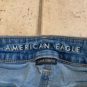 Get a classic, comfortable look with these American Eagle Outfitters Super Stretch jeans! These are a perfect everyday essential, featuring a flattering skinny fit and a trendy raw hem.