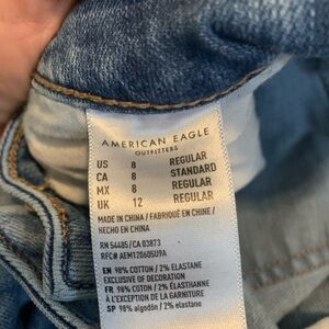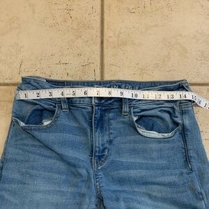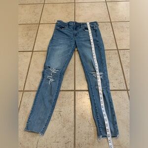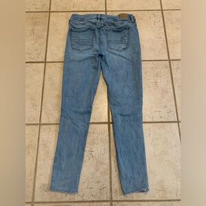 American Eagle, AE, Skinny Jeans, Super Stretch, Raw Hem, Distressed, Light Wash, Medium Wash, Denim, Jeans, Casual, Everyday, Size 8, Regular, Comfort, Stretchy, Essentials.