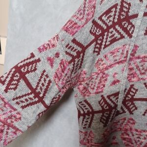 American Eagle hoodie, cotton knit sweater, boho knit hoodie, Southwest print hoodie, geometric knit top, cozy cotton sweater, burgundy pink pattern hoodie, women’s medium hoodie, casual knit pullover, cabin core hoodie
