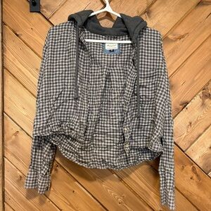 American Eagle Outfitters Women's Grey and White Checkered Button Up Hoodie Med