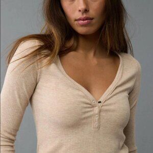 American Eagle Outfitters Women's Long Sleeve Henley Top