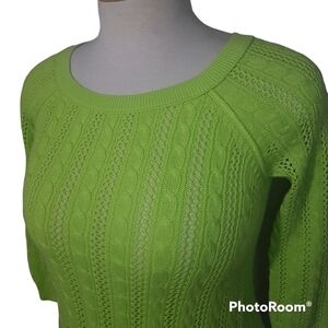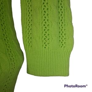 Expertly crafted with a classic cable knit pattern and modern lime green hue, this sweater combines timeless style with an edgy pop.