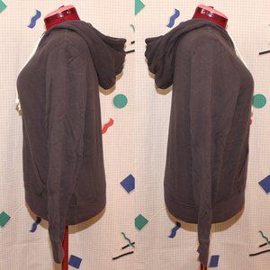 Dark gray hoodie from American Eagle Outfitters. Zipper closure. Has one front pocket. Worn and washed less than 5 times. Made in Indonesia. 80% cotton/20% polyester. Measurements lying flat are: 22"(44") bust, 21"(42") waist and 21"(42")hips. Fabric has a 35% stretch limit. Comes from a smoke-free home that has cats and dogs. Tags: y2k, indie, alternative