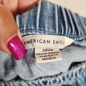 This mini skirt from American Eagle Outfitters showcases a playful bubble style with tiered layers, perfect for casual occasions. Its classic blue color and voluminous silhouette add a touch of fun to your everyday wardrobe. The elastic waistband ensures a comfortable and flattering fit.