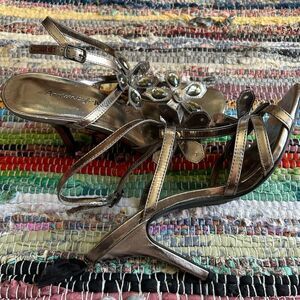 American Eagle Outfitters Silver Heels with Elegant Floral Design