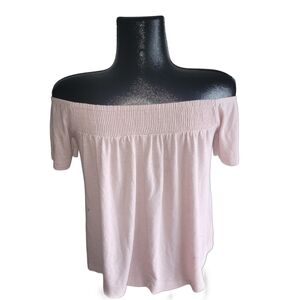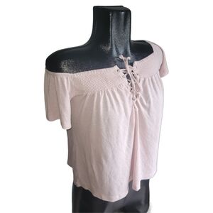 American Eagle Pink Off-Shoulder Lace-Up Crop Short Sleeve Top XS