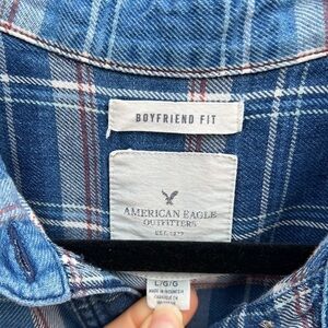 American Eagle Plaid Button Down Boyfriend Fit Sz L
