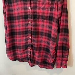 American Eagle Plaid Flannel Shirt Sm Red Boyfriend Fit Amazingly Soft Longline