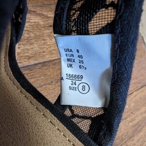 Due to variations in lighting and the camera being used, coloring can appear slightly different. these are black lace with tan tones.