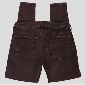 American Eagle Oufitters Super Stretch X Jeggings. Women's Size 4 Short. 49% cotton, 42% viscose, 6% polyester, 3% elastane. All over stretchy and soft. Grape purple. Black label. Intentional cuff and pocket edge fray.