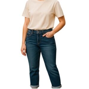 American Eagle Retro Boy Fit Stretch Cuffed Crop Jeans Blue Medium Wash Denim 12