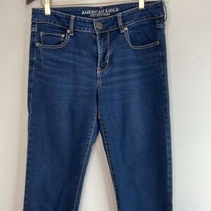 American Eagle Retro Low Rise Straight Stretch Jeans Blue Dark Wash Denim 10 L