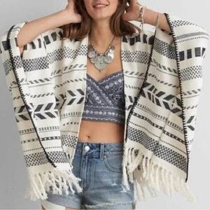 🔥 American Eagle Reversible Tan & Grey Poncho