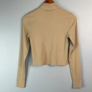 American Eagle Ribbed Cropped Mock Neck Shirt Tan Brown Long Sleeves M