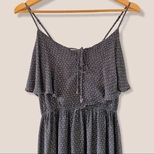 Light and airy ruffle mini dress. Front tie and elastic waist. Excellent condition. The dress is quite short so please see measurements below. Spaghetti straps are adjustable. Size S.