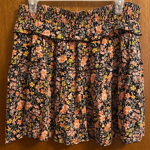 American Eagle Ruffle Skirt NWOT Excellent used condition Never worn Black with multi coloured flowers Size Large
