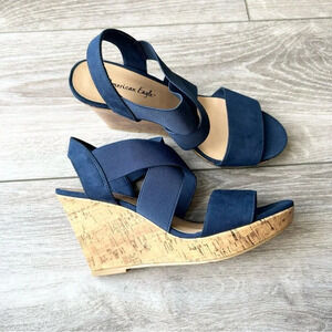 American Eagle Ryan Blue Cork Wedge Sandals