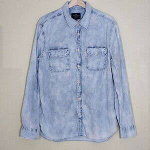 American Eagle Shirt Mens L Blue Collared Button Up LS Denim Faded Hippie Grunge