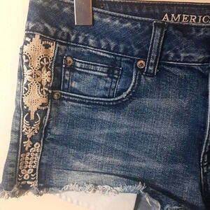 American Eagle Shortie stretch denim lace embellishmented raw hem shorts