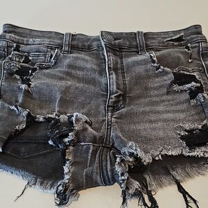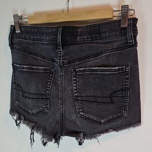American Eagle Size 6 Next Level Stetch Black Distressed Denim Shorts