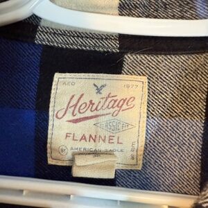 American Eagle Size XL Blue/Black/White Plaid Flannel Shirt