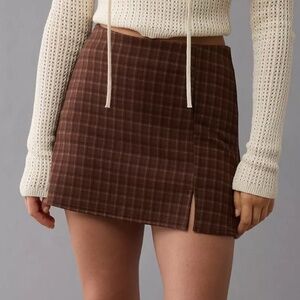 American Eagle | Size XS | IT Knit Plaid Skirt – High-Waist with Slit Detail