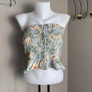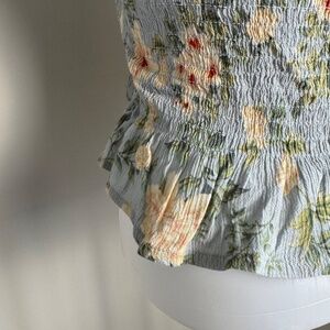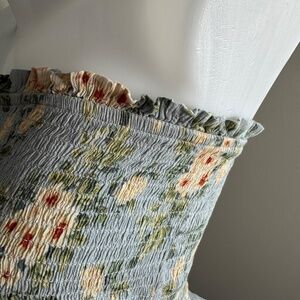 American Eagle Smocked Tube Top Ruffle Hem Blue Floral Medium Festival Y2K