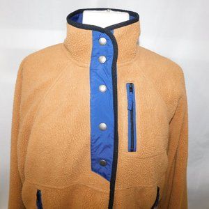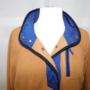 American Eagle Snap Front Sherpa Fleece Jacket Blue Tan Brown Womens XS