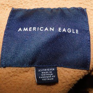 This Womens XS American Eagle Snap Front Brown Blue Sherpa Fleece Jacket is in Great clean soft condition. Jacket is 100% Polyester - Machine washable - Tumble dry.
