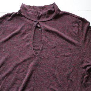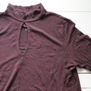 American Eagle Soft & Sexy Burgundy Mockneck Long Sleeve Keyhole Cut Out Shirt