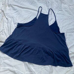 Lightweight and easygoing tank from American Eagle’s Soft & Sexy line. Features a ruffle racerback design in navy blue with a soft, breathable feel — perfect for layering or wearing on its own.