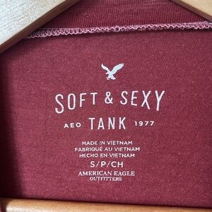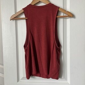 American Eagle “Soft & Sexy” tank in a soft reddish-brown color, size small. Relaxed fit with a high-low hem and dropped armholes. Lightweight and comfy. Light pilling throughout (see close-up photo), otherwise in good condition.