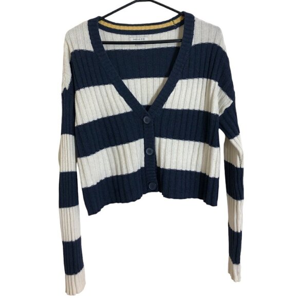 American Eagle Striped Cropped Boxy Button-Up Cardigan